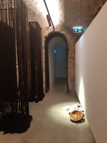 E alla fine del cammino, si giunge nell’ultima stanza dove l’installazione si conclude con lunghe trecce di capelli che dal soffitto arrivano fin sul pavimento, dove l’artista Sheela Gowda adagia alcuni oggetti di uso quotidiano e di riciclo, materiali a cui l’artista dà sempre ampio spazio nelle sue installazioni.